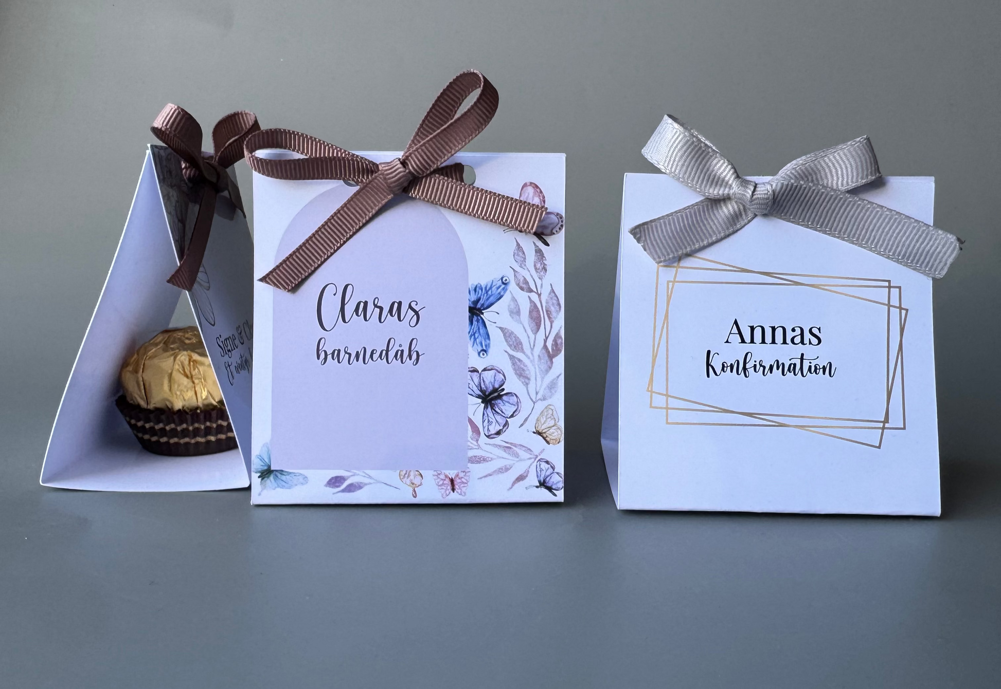Gør din fest uforglemmelig med disse elegante favor æsker, perfekt til enhver anledning – barnedåb, konfirmation, bryllup eller fødselsdag. Hver æske er designet med et luksuriøst udtryk og kan tilpasses fuldstændigt efter dit tema, farver og ønsket tekst.